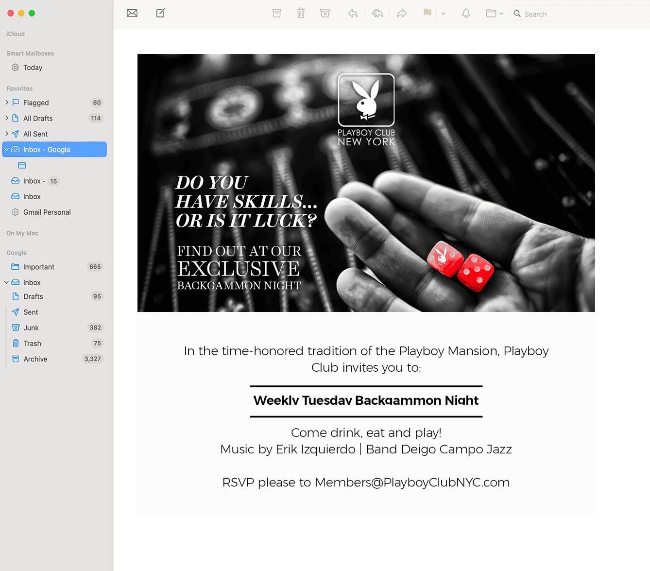 To support ongoing programming, we produced e-blast campaigns promoting weekly events, themed nights, and special appearances. The tone stayed confident and inviting—never crossing into the wrong category of nightlife. Clear messaging, strong visuals, and straightforward calls to action helped drive reservations and maintain momentum during the club’s reopening phase.
